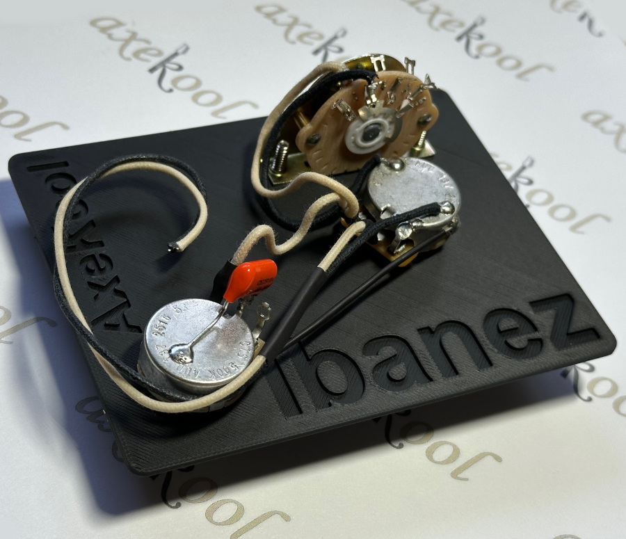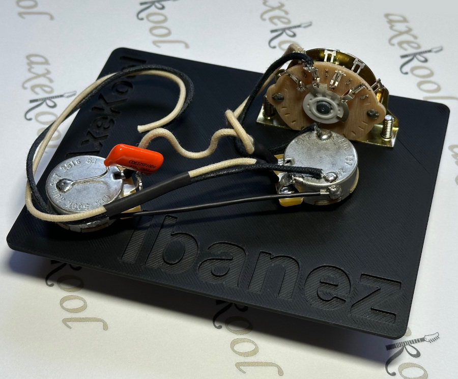 This is a Professional Ibanez wiring harness using the very best in components to enhance the quality of tone and sound output from your guitar.